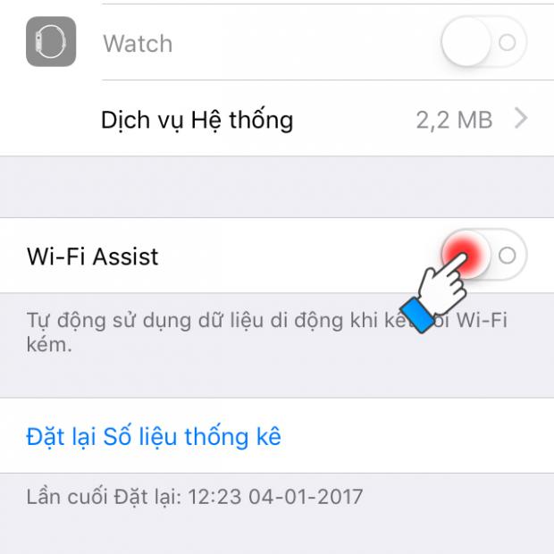 Kéo xuống dưới cùng và bạn tắt tính năng Wi-Fi Assist.