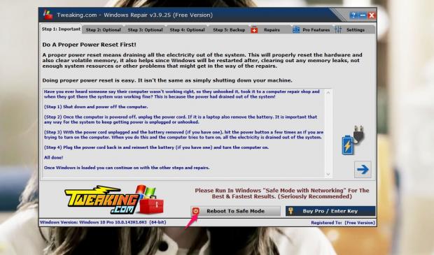 Bước 1: Khởi động lại máy, thiết lập lại hệ điều hành Windows bằng cách click Reboot to Safe Mode.