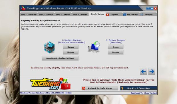 Bước 5: Trong bước này phần mềm sẽ hướng dẫn bạn tạo điểm khôi phục hoặc một bản sao lưu registry