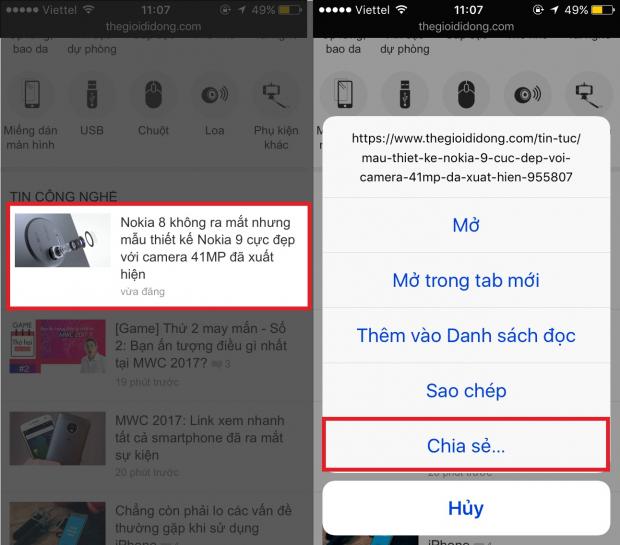 Trên phiên bản iOS 10 trở về sau bạn có thể nhấn giữ vào một đường link để chia sẻ nhanh chúng với bất kỳ người nào bạn muốn. Điều này thật sự nhanh hơn rất nhiều so với việc ngồi sao chép.