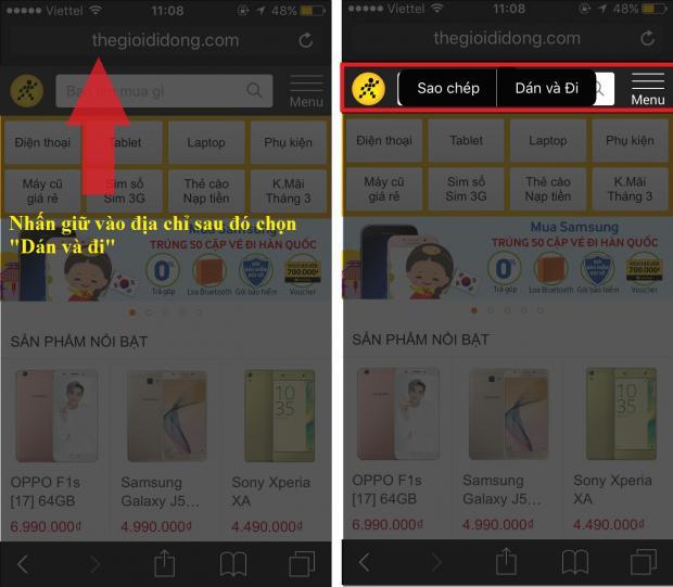 Bạn có thể nhấn giữ tay vào thanh đia chỉ sau đó chọn 'Dán và đi' là có thể tìm kiếm nội dung vừa được copy rồi đấy. Điều này thật sự nhanh hơn rất nhiều so với việc dán ra rồi nhấn phím enter.