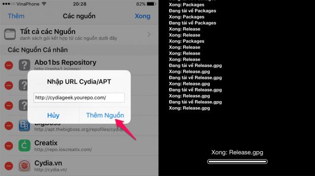 Đầu tiên, bạn cần thêm nguồn cấp ứng dụng vào Cydia. Địa chỉ: http:// cydiageek.yourepo. com/ (tất cả viết liền). Lưu ý, quá trình thêm nguồn có thể mấy tới 5 phút.