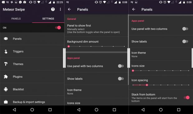 Bảng điều khiển (Panels): Chọn mục đầu tiên và tùy chỉnh các chức năng như Background dim amount (độ mờ độc ảnh nền), sắp xếp ứng dụng theo hàng đơn hoặc cột đôi, kích thước icon và độ dãn cách của biểu tượng.