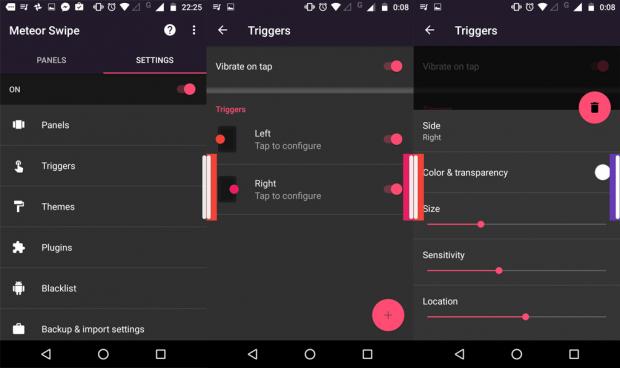 Thao tác và cử chỉ (Triggers): Trong mục này, bạn có thể tùy chỉnh thao tác vuốt để mở sidebar từ hai bên cạnh màn hình và vuốt trở lại để ẩn.