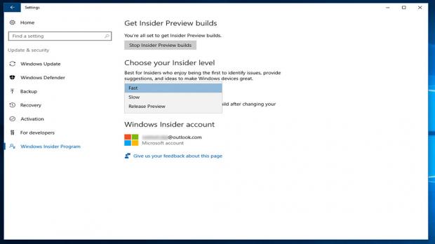 Bước 5: Click Choose your Insider level, sau đó chọn một trong 3 cài đặt Fast, Slow, và Release Preview. Mặc định Windows sẽ ở chế độ Release Preview, nhưng nếu bạn muốn cập nhật nhanh, hãy chọn Fast hoặc Slow