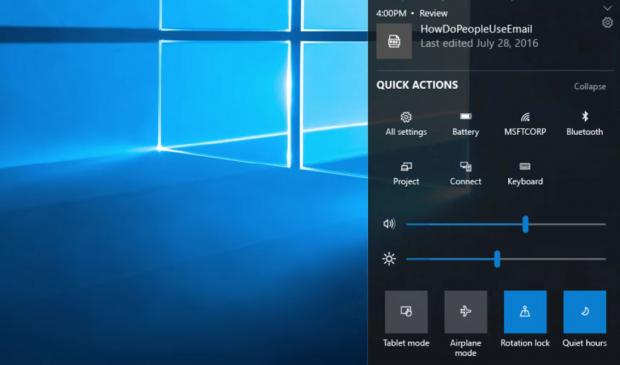 Năm ngoái Microsoft đã làm việc để cải tiến Action Center trong Windows 10. Trong đoạn video giới thiệu phiên bản Creators Update còn xác nhận thay đổi thiết kế mới dành cho Action Center. Nhưng thật không may, các thay đổi không làm cho nó xuất hiện trong bản Creators Update. Các thay đổi này đã bị hủy bỏ, vì chúng không thêm bất kỳ tính năng bổ sung mới nào ngoài việc tinh chỉnh lại thiết kế. Nhưng Microsoft vẫn đang thay đổi Action Center cho phiên bản Redstone 3.