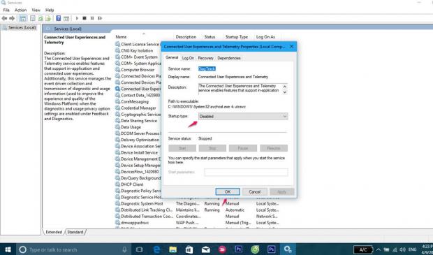 Cách 1: Tắt service Connected User Experiences and Telemetry và Superfetch