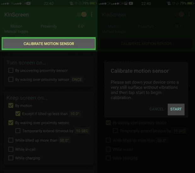 Khi cài đặt xong, bạn mở ứng dụng lên và chọn vào mục Calibrate Motion Sensor > Start. Sau đó, ứng dụng sẽ tiến hành thiết lập cảm biến trong vòng 10s và yêu cầu người dùng không được di chuyển điện thoại.