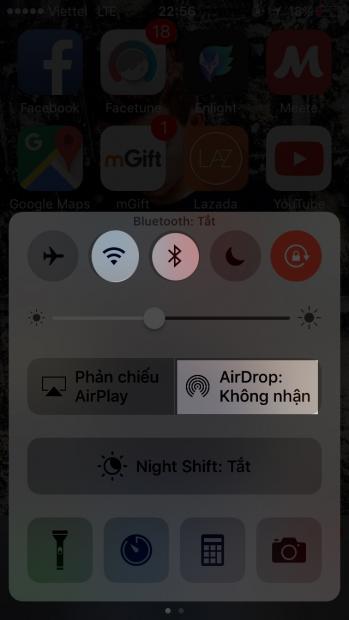 Nếu những tính năng này được bật khi không sử dụng nó sẽ làm hao tốn năng lượng không cần thiết. Bạn có thể truy cập vào Trung tâm kiểm soát, sau đó chạm vào biểu tượng Bluetooth và Wi-Fi để tắt/mở chúng. Đối với AirDrop, để tắt tính năng này đi, chạm vào và chọn Không nhận.