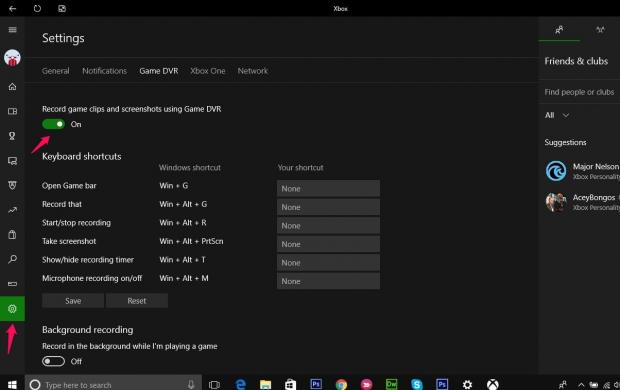 Bước 2: Click Settings, tìm đến tab Game DVR, click vào tùy chọn Record game clips and screenshots using Game DVR