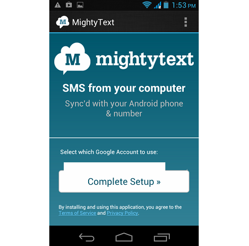Truy cập Google Play Store vàcài đặt MightyTextcho thiết bị Android. Khi mở ứng dụng lần đầu tiên, bạn sẽ được yêu cầu đăng nhập bằng tài khoản Google và cấp quyền cho ứng dụng. Sau đó, MightyText sẽ tự động hiển thị tất cả những tài khoản đồng bộ tới thiết bị Android.