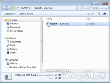 Sau khi file đã được tải về, một cửa sổ Windows Explorer mở ra, hiện nội dung của file .zip. Kích đúp vào file .exe để bắt đầu cài đặt.