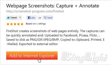 Tùy vào add-on, một thanh công cụ đặc biệt có thể được bổ sung vào Internet Explorer, cung cấp quyền truy cập vào chức năng add-on. Chúng tôi đã quyết định chụp hình cửa sổ trình duyệt và lưu lại ảnh.