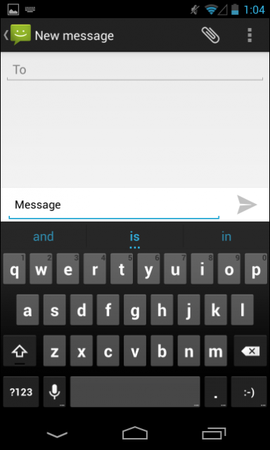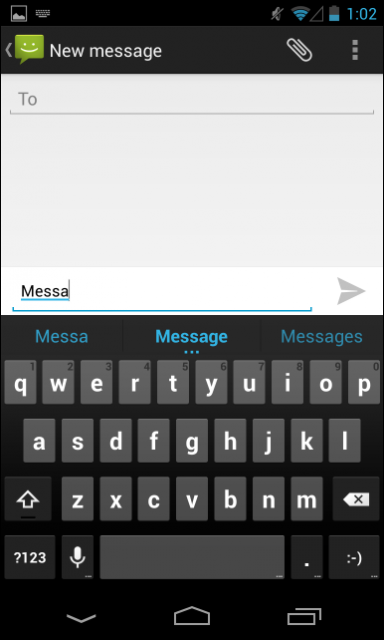 Khi gõ một từ, bàn phím của Android 4.2 sẽ cố suy nghĩ trước, đoán từ bạn định gõ. Ví dụ, gõ Messa và 'Message' sẽ xuất hiện phía trên bàn phím. Sau đó, bạn có thể gõ thanh cách (space bar) để chuyển sang từ tiếp theo và Android sẽ tự động điền vào phần còn lại của từ mà nó đang chờ bạn gõ.