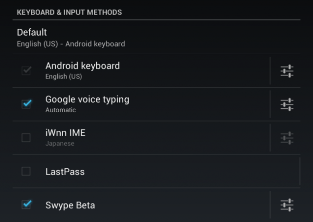Bạn cũng có thể tùy chỉnh cách hoạt động của bàn phím. Hãy mở màn hình Settings > chạm vào Language & input > chạm vào nút thiết lập ở bên phải của Android keyboard.