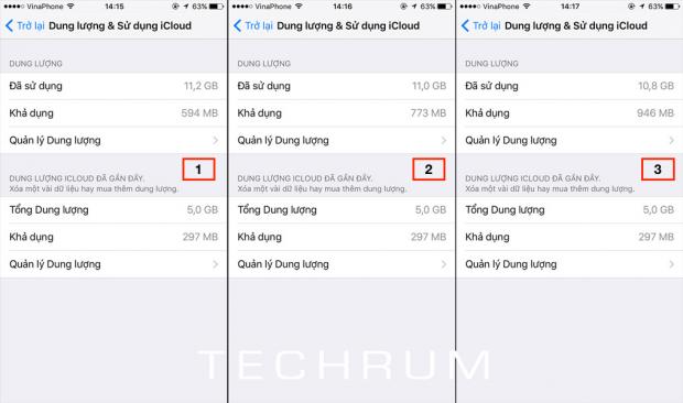 Như ảnh trên, bạn thấy qua 3 lần, lần đầu là chưa dọn, lần 2 bộ nhớ trong tăng lên và lần 3 bộ nhớ trong tiếp tục tăng.