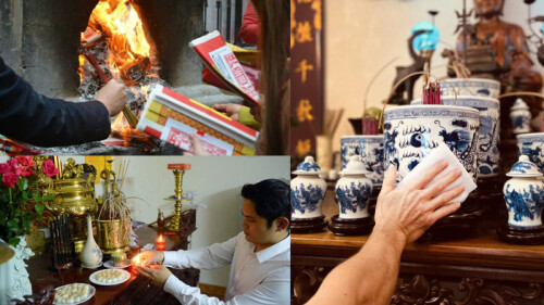 Cần dọn dẹp sạch sẽ ban thờ gia tiên nếu cúng Rằm Tháng Giêng ở nhà. Các vị trí đặt đúng chỗ và ngay ngắn như bát hương, lọ hoa, ….