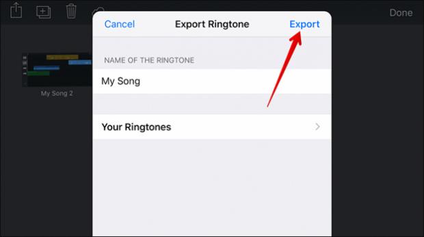 Bước 9: Bảng mới hiện ra bạn hãy đặt tên cho bản nhạc chuông đó và chọn Export ở góc trái để xuất bản nhạc chuông đó ra.