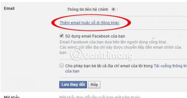 Trong trường hợp quên mật khẩu Facebook, bạn có thể sử dụng email này để lấy lại Facebook hoặc với những trường hợp bị hack. Bạn vào phần Cặt đặt, nhấn vào phần Email. Bạn sẽ thấy mục Thêm email hoặc số di động khác.