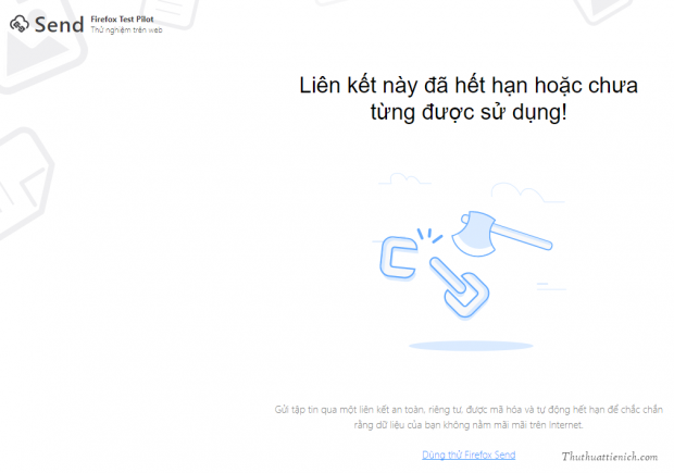 Liên kết sau khi hết hạn hoặc đã được tải về một lần sẽ có thông báo Liên kết hết hạn như hình dưới.