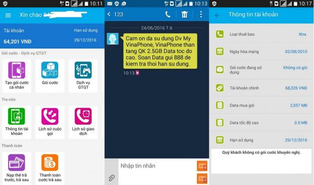 4. Khoảng 3-5p thì Vinaphone sẽ tự động gửi tin nhắn cộng dung lượng cho các bạn qua SMS. Các bạn có thể kiểm tra lại qua My Vinaphone sẽ thấy sự thay đổi.