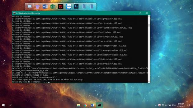 Bước 4: Tải file sau về, sau đó tiến hành chạy và ấn phím bất kì để quá trình dọn rác được tiến hành. Khi nào quá trình dừng lại và hiện dòng “Press any key to continue…” thì hãy ấn phím bất kì để hoàn tất. Tải tại đây.