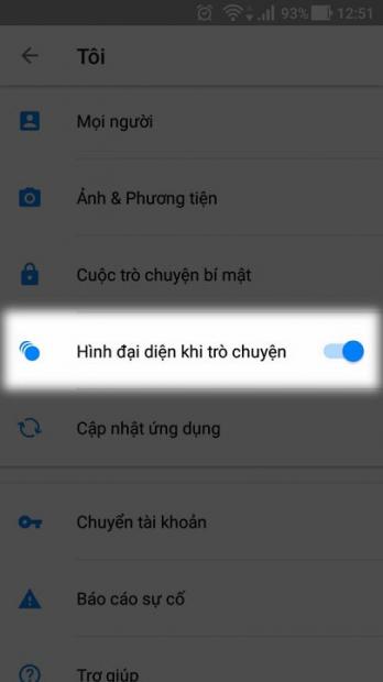Tại đây chứa các cài đặt trên Messenger, các bạn kéo xuống sẽ thấy mục Hình đại diện khi trò chuyện. Đây chính là tính năng bong bóng khi có tin nhắn, các bạn tắt đi là được.