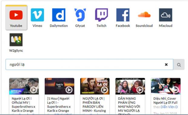 Bước 2: Tại khung tìm kiếm, bạn nhập vào tên video cần chia sẻ (hỗ trợ tìm kiếm trên YouTube, Dailymotion, Vimeo, SoundCloud) hoặc có thể sao chép và dán link video trực tiếp vào khung tìm kiếm.