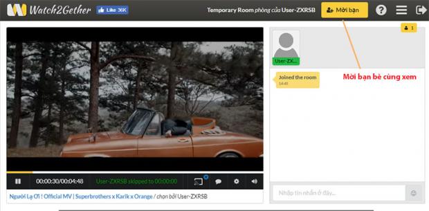 Bước 3: Sau khi chọn video xong, có thể mời bạn bè cùng xem trực tuyến bằng cách nhấn vào biểu tượng 'Invite' ngay bên phải. Lúc này có rất nhiều lựa chọn cho bạn: