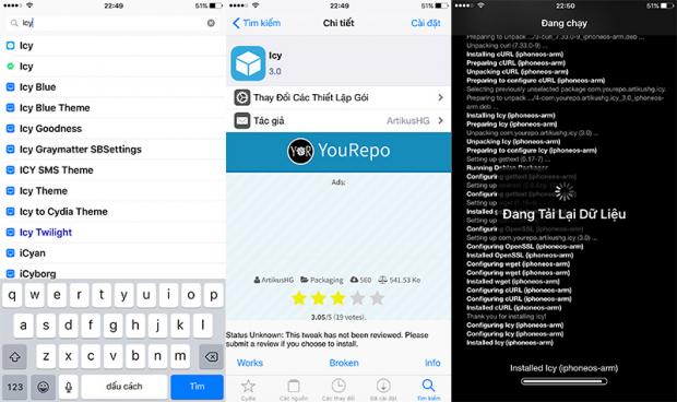 Tổng quan Icy Installer 3 khá nhẹ, giao diện thân thiện với người dùng chứ không quá cồng kềnh như Cydia, tốc độ tải gói nhanh và hỗ trợ cài đặt file .deb qua liên kết gốc. Tuy nhiên, một lưu ý nhỏ mà bạn cần biết là công cụ này vẫn chưa phải phiên bản chính thực, còn chứa khá nhiều lỗi như tự động respring máy, tốc độ load dữ liệu từ Cydia chậm, giao diện đơn giản và chưa phù hợp để sử dụng đại trà. Nếu như nói Icy Installer 3 sẽ thay thế cho Cydia thì mình nghĩ rằng điều đó khó có thể sảy ra (ít nhất là ở thời điểm hiện tại).Hướng dẫn cài đặt Icy Installer 3 nếu bạn muốn dùng thử:
