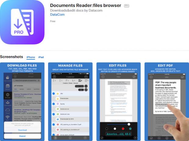 Trình quản lý tập tin khá mạnh mẽ dành cho các thiết bị iOS, cho phép truy cập tới hầu hết các thư mục và tập tin trên iPhone hoặc iPad. Ngoài các tính năng thường thấy ở trình quản lý tập khác, bạn cũng có thể sử dụng Documents Reader để xem file tài liệu với nhiều định dạng khác nhau như PDF, DOCX v.v...