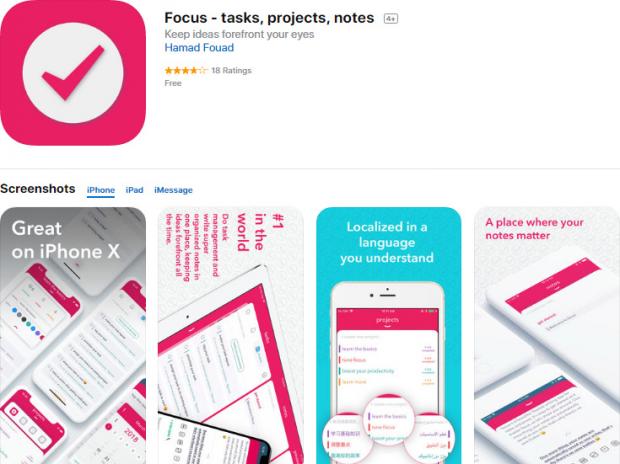 5. Focus - tasks, projects, notes (Đánh giá: 4*)