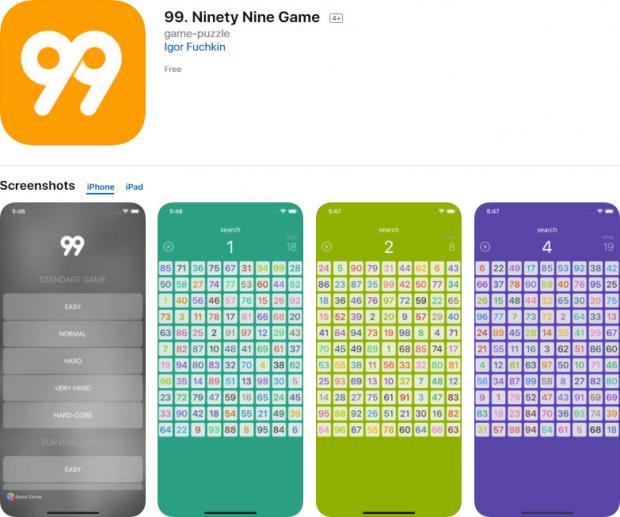 Tựa game giải đố trí tuệ cực kỳ hấp dẫn, yêu cầu người chơi phải tìm ra những con số được gợi ý trong danh sách tổng hợp 99 chữ số sắp xếp ngẫu nhiên.
