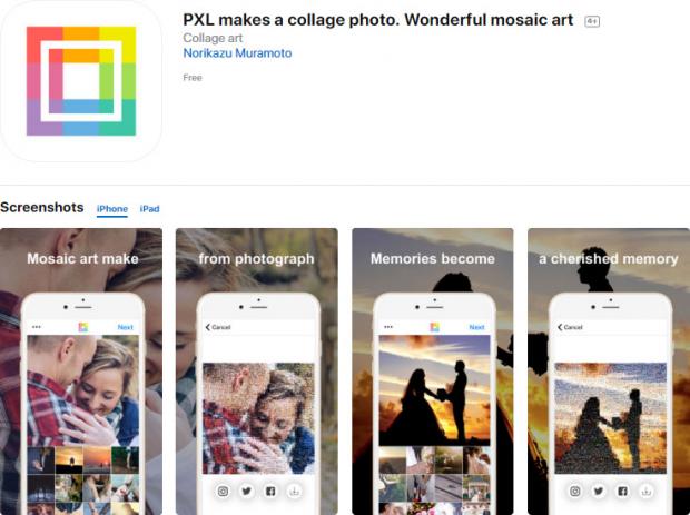 - PXL makes a collage photo. Wonderful mosaic art on the App Store (2,99 USD)