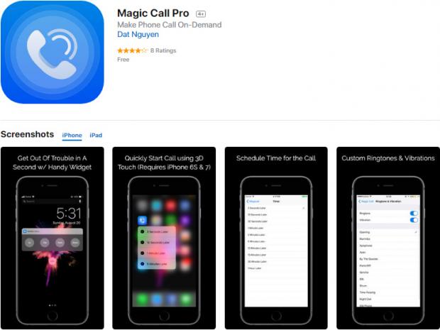 Một công cụ để làm giả cuộc gọi đến với thời gian đổ chuông tùy chọn như 3 giây, 10 giây, 1 phút và 5 phút. Có thể hữu dụng trong một số trường hợp khẩn cấp như tình huống khó xử, cuộc trò chuyện nhàm chán, gặp phải người khó chịu v.v...