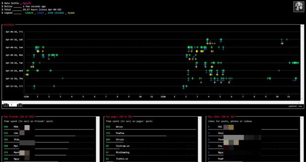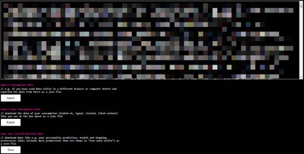Thêm vào đó, bảng điều khiển của Data Selfie đều có những báo cáo chi tiết về những bài viết mà bạn dành thời gian để xem nhiều nhất, kể cả của bạn bè hay các trang đã thích. Theo một cái nhìn đáng sợ nhưng đầy thú vị, tiện ích này còn có khả năng sử dụng thuật toán phân tích dự báo để đoán được sở thích mua sắm, thức ăn, sản phẩm yêu thích, kể cả các quan hệ chính trị của bạn.