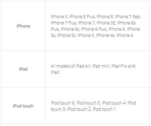 Danh sách các thiết bị được hỗ trợ