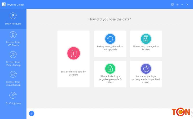 Đây là tính năng dành cho người không rành về công nghệ cho lắm, có thể nói là tính năng Auto – tự động. Khi lựa chọn tính năng này, phần mềm sẽ hỏi người dùng cần khôi phục dữ liệu như thế nào, lý do mất là gì để đưa ra cách phục hồi dữ liệu nhanh và hiệu quả nhất. Các tuỳ chọn khá đầy đủ bao quát toàn bộ những lỗi phổ biến hay gặp trên các thiết bị iPhone/iPad/iPod bao gồm xoá dữ liệu do lỡ tay, Reset máy, Jailbreak hay update iOS gây mất dữ liệu, kẹt ở logo quả Táo hay thậm chí là iPhone bị hỏng.