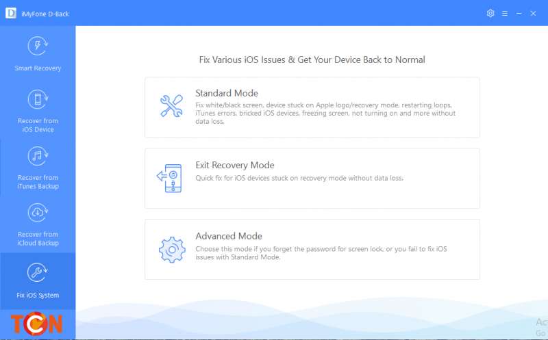 Đây có thể là tính năng “ăn tiền” nhất trên iMyFone D-Back vì nó có thể trở thành “trợ thủ” đắc lực của những người không rành về công nghệ. Tính năng này cho phép chúng ta fix những lỗi liên quan đến hệ điều hành iOS. Nếu thiết bị của chúng ta hoạt động thiếu ổn định, có lỗi giật lag khó hiểu hay bị bất cứ lỗi phần mềm nào thì iMyFone D-Back có thể thực hiện scan và phát hiện đồng thời fix những lỗi liên quan một cách hoàn toàn tự động.