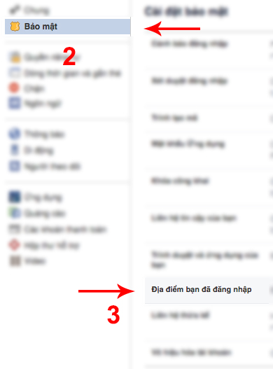 Góc bên trái màn hình lựa chọn 'Bảo mật' -> 'Địa điểm đăng nhập'