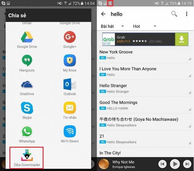 Bước 4: Tại cửa sổ chia sẻ, chọn Ziba Downloader. Ngay lập tức màn hình sẽ thông báo đã tải bài hát.