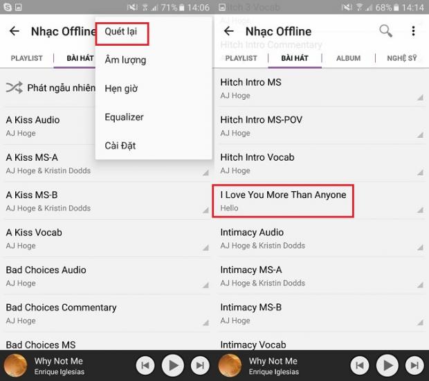 Bước 6: Chọn Quét lại, sau khi quét lại hoàn tất, bài hát bạn vừa tải về sẽ xuất hiện.