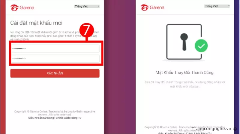 Trên đây là các cách đổi mk Garena mà hiện nay rất nhiều bạn gặp phải nhưng chưa biết thực hiện. Với những hướng dẫn từ Trangcongnghe.vn, các bạn chắc chắn sẽ đổi mk tk Garena thành công 100%, đồng thời rút được kinh nghiệm để tránh mất tk khi lập mới. Hy vọng bài viết từ Trangcongnghe.vn đã mang lại những thông tin hữu ích dành cho các bạn!