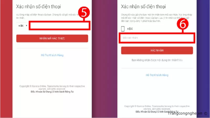 Bước 5: Garena sẽ gửi mã xác thực đến điện thoại của bạn. Lúc này bạn hãy điền mã xác thực đó vào ô 'Mã xác nhận' và ấn 'Xác nhận'.