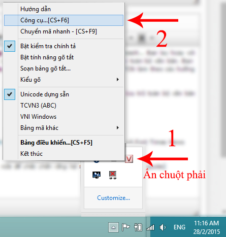 2. Chọn 'Công cụ' (Theo hình) trên Unikey.