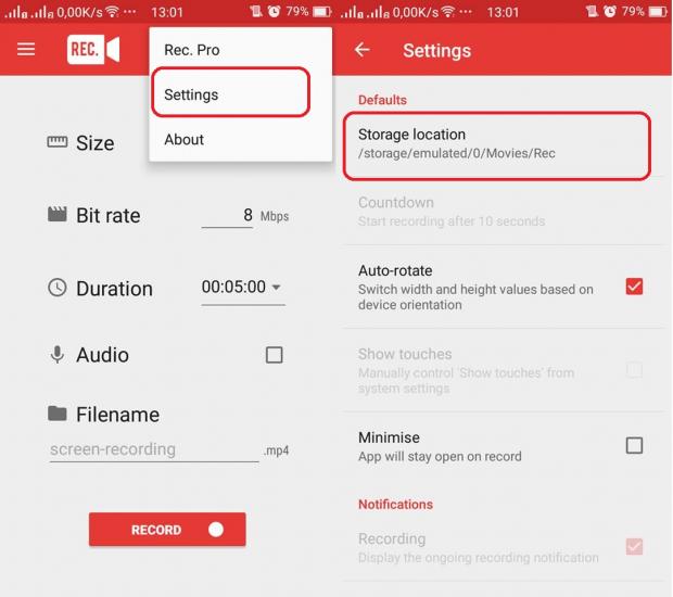 Ứng dụng rất nhẹ và dễ dùng, chỉ cần mở lên và bấm nút Record. Người dùng cũng có thể điều chỉnh kích cỡ, thời gian giới hạn,... Sau khi quay xong, bạn có thể nhấn vào thông báo trên thanh trạng thái để dừng clip lại.