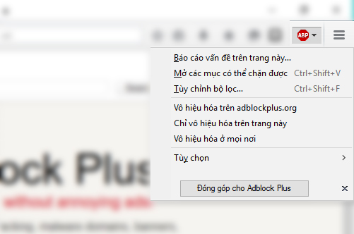 Bạn yên tâm vào AdBlock Plus một plug-in mã nguồn mở được cộng đồng mạng phát triển và luôn cải tiến phù hợp với hiện nay. Ngoài tương thích với Firefox thì AdBlock Plus còn có thể cài đặt trên các trình duyệt thông dụng khác như : Chrome, Coccoc, IE...