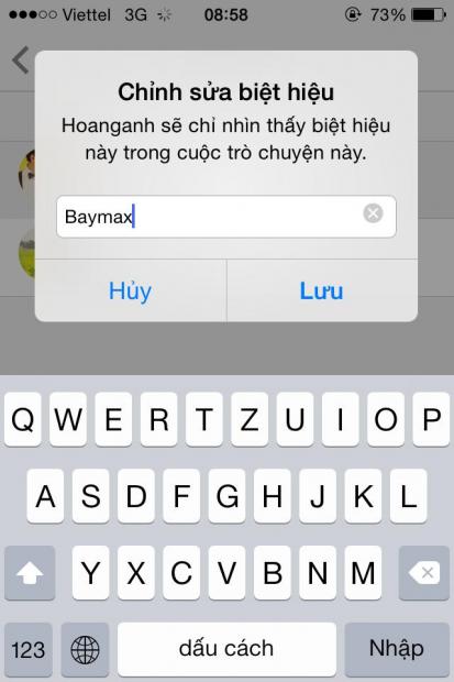 - Bạn hãy nhấn vào Biệt hiệu để đặt biệt danh mới cho người bạn của mình. Sau khi hài lòng, bạn hãy lưu lại tên biệt danh ấy.