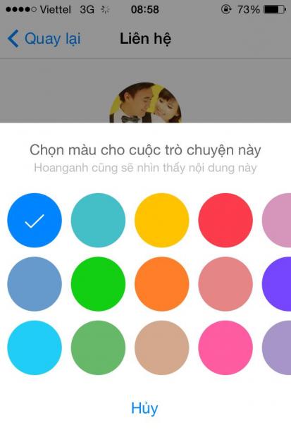 - Bạn hãy nhấn Màu để thay đổi màu sắc cho cuộc trò chuyện.