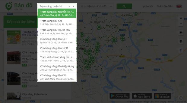 Các bạn có thể tìm kiếm trạm xăng theo từng Quận bằng cách nhập vô tại mục tìm kiếm của trang web.